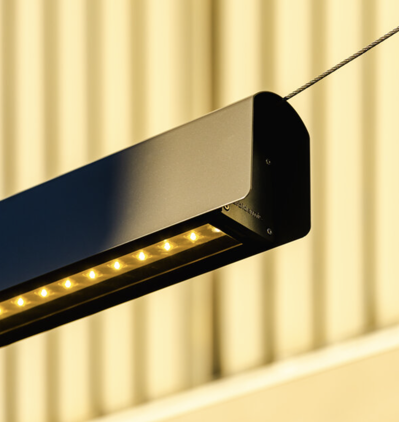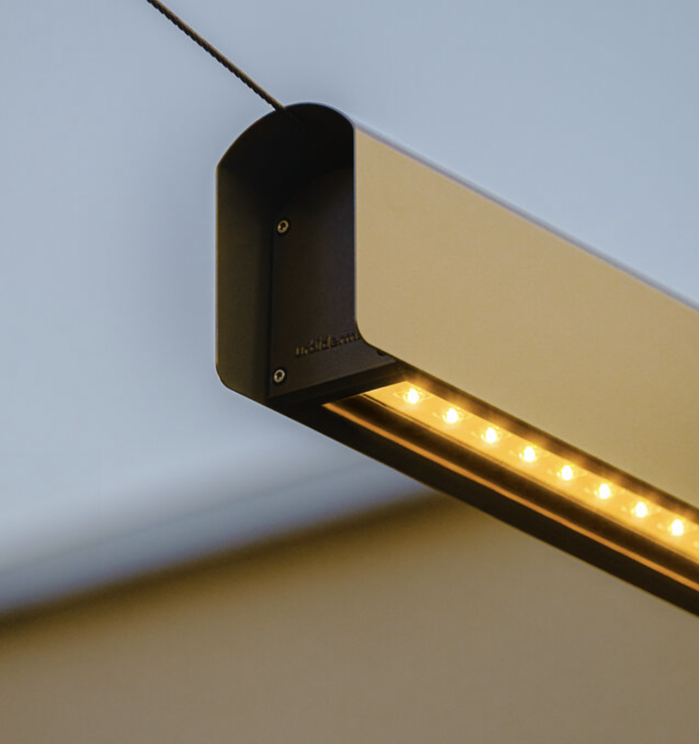 Le luminaire urbain Louis harmonise l'espace extérieur en caténaire dans des compositions répétitives linéaires ou dans des arrangements autonomes sur le plan du projet. Protégé des intempéries par un écran, il dispose de deux alternatives d'éclairage pour un contrôle symétrique de la lumière, une efficacité énergétique élevée et une pollution lumineuse nulle.