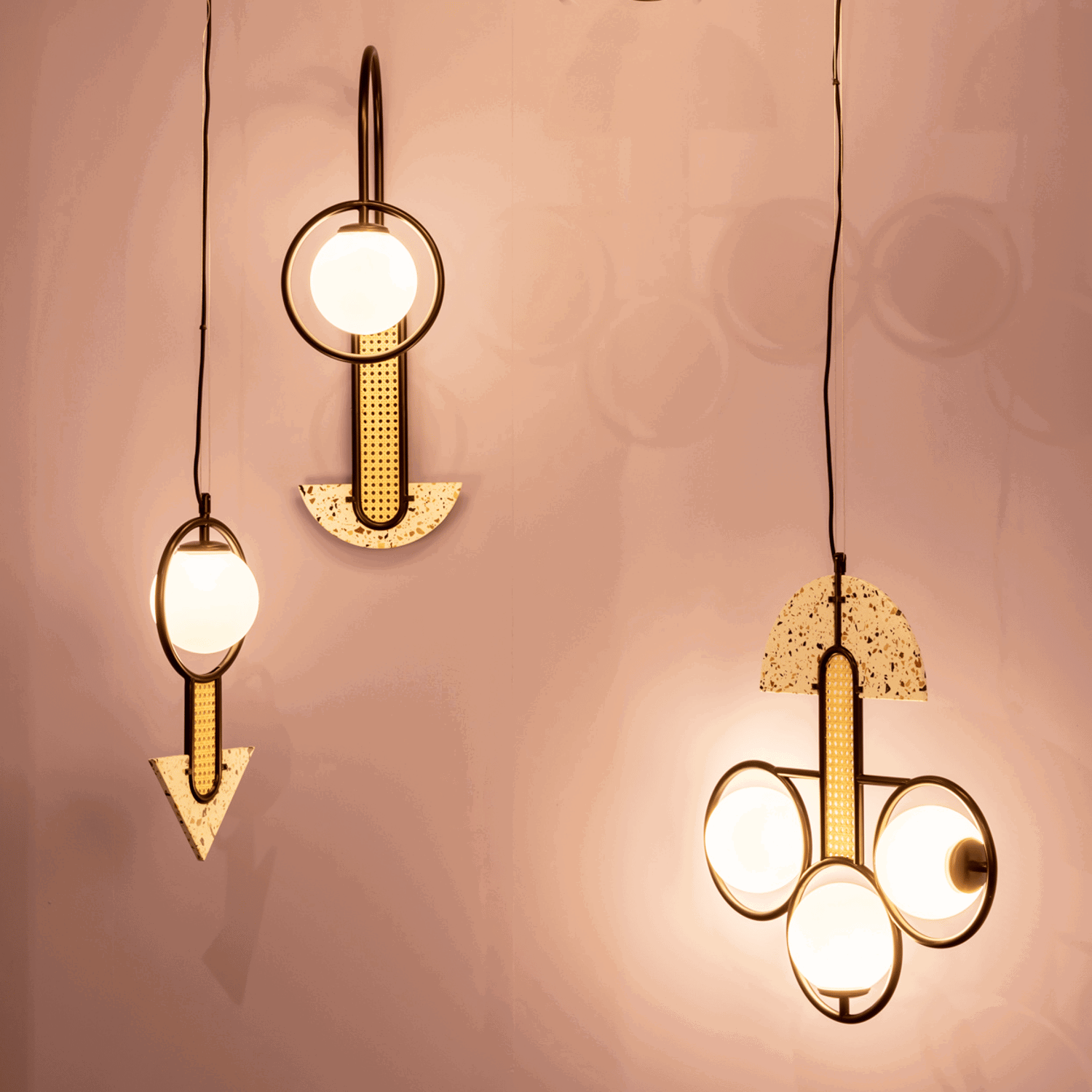 | Matériau(x) | Métal laqué, rotin, marbre terrazzo et Verre | |