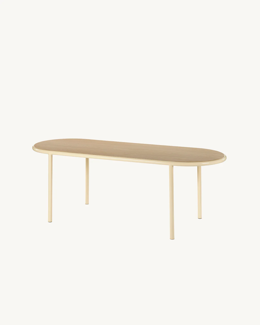 Le produit Table en bois ovale ivoire/chêne du fabricant valerie_objects classé dans la catégorie Aménagement exterieur > Mobilier > Table est référencé dans la Matériauthèque digitale Materiaux.archi.