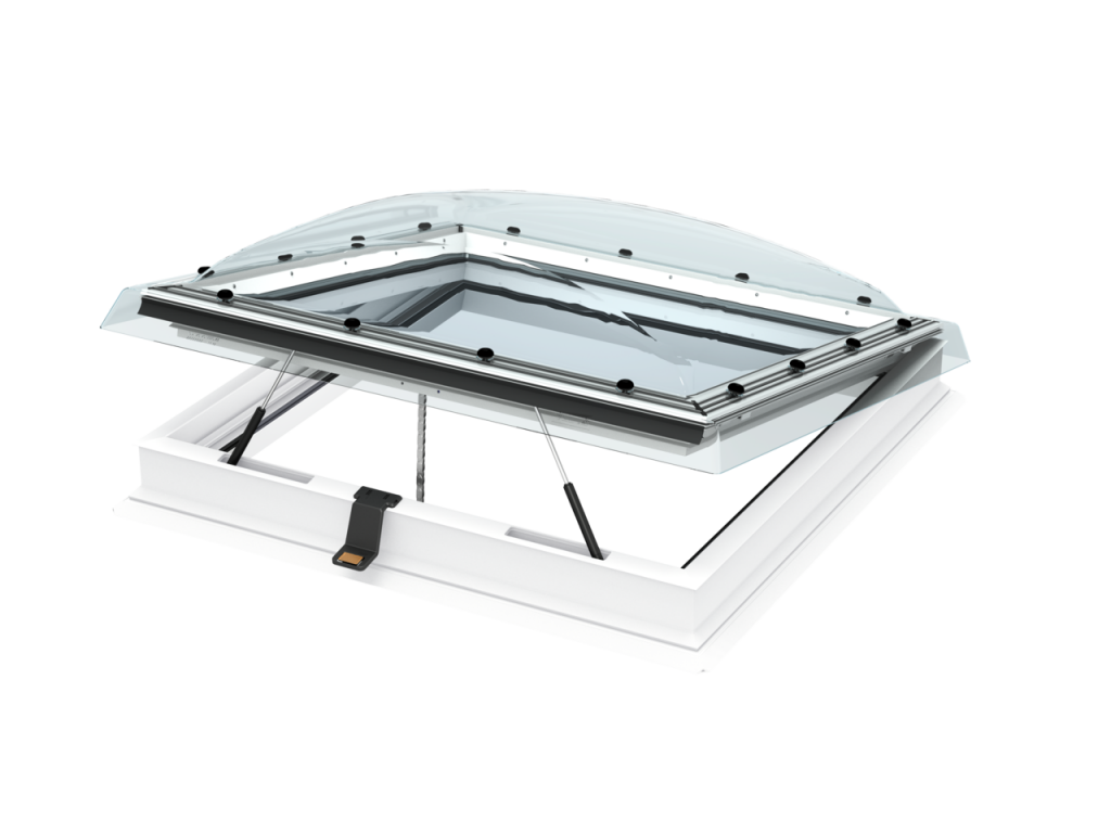 Le produit CVP - Fenêtre pour toit plat motorisée - Coupole acrylique du fabricant VELUX classé dans la catégorie Menuiseries extérieures > Fenêtres de toit - éclairage zénithal > Fenêtres de toit est référencé dans la Matériauthèque digitale Materiaux.archi.