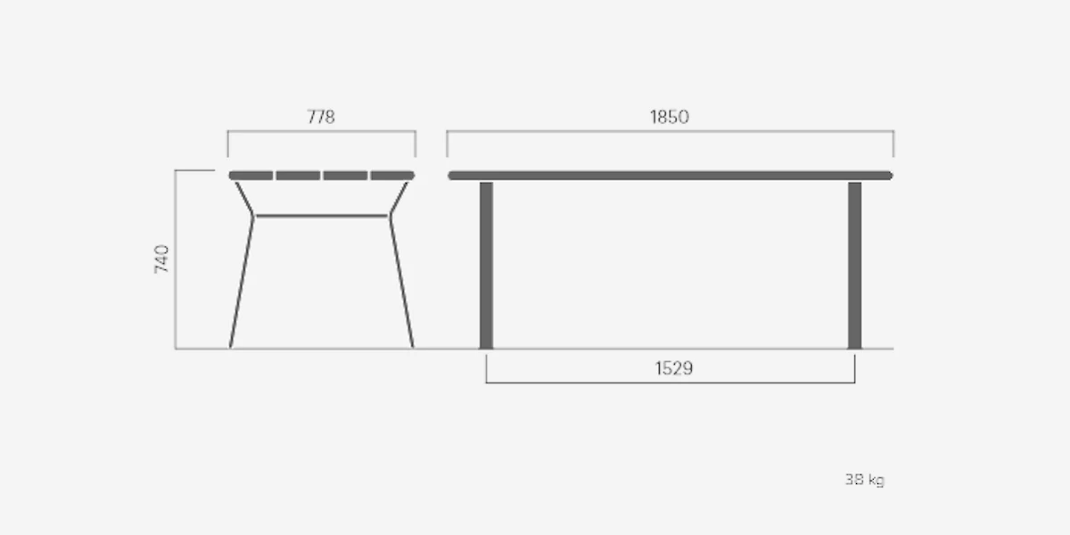 Le produit FOLK table du fabicant VESTRE a une longueur de 185 cm, une largeur de 77,8 cm,