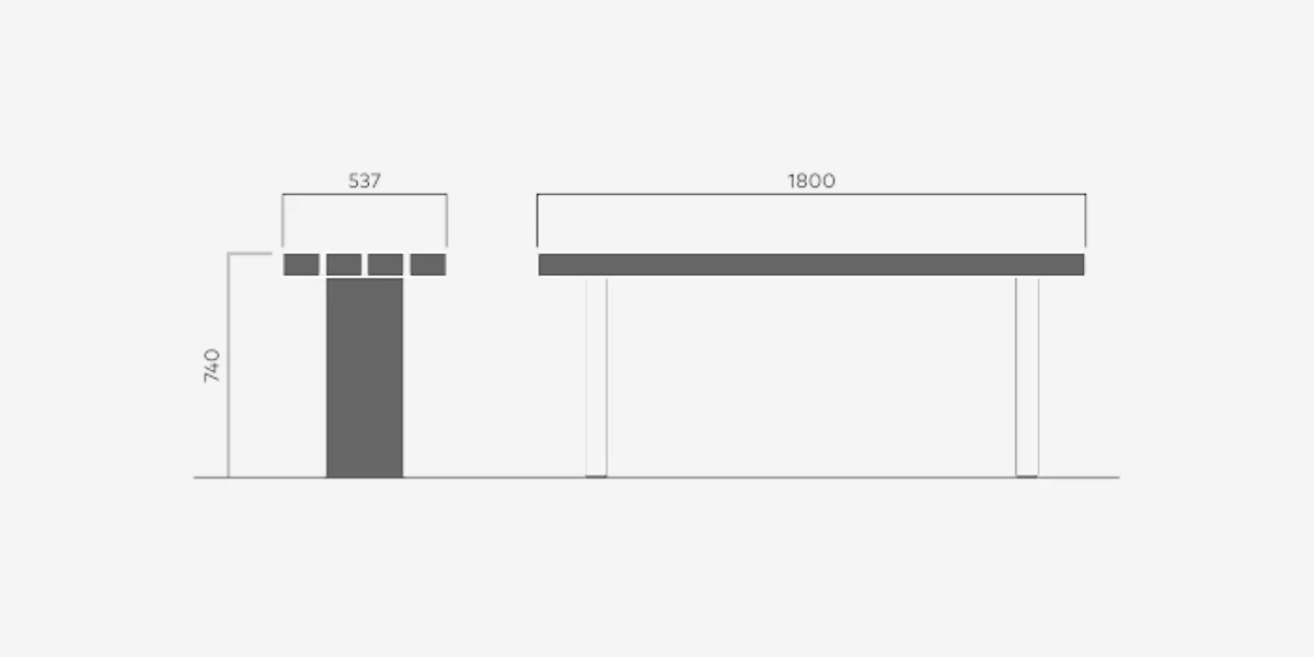 Le produit KONG table du fabicant VESTRE a une longueur de 180 cm, une largeur de 53,7 cm,