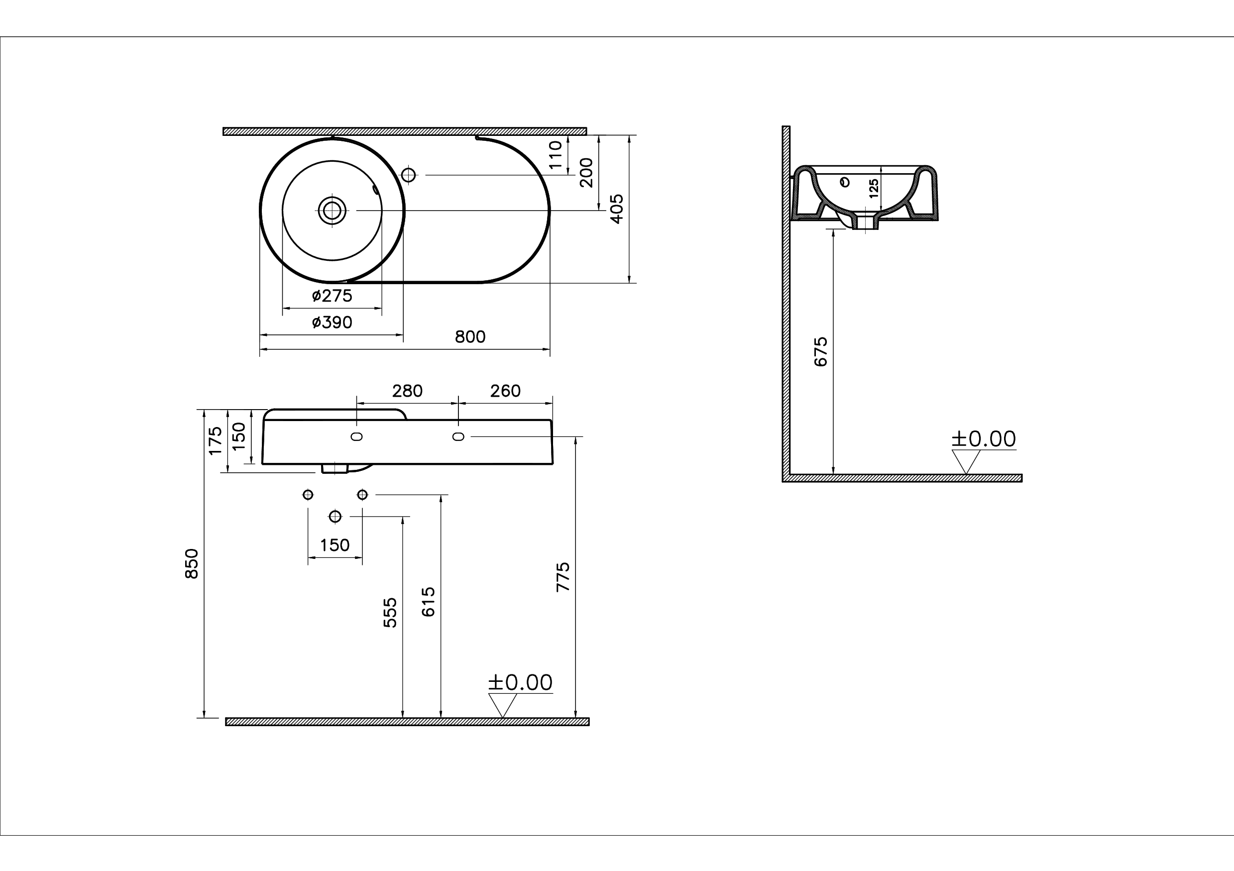 Le produit Liquid Lavabo - 7314B403-0001 du fabicant VitrA Bathrooms a une largeur de 800 mm,