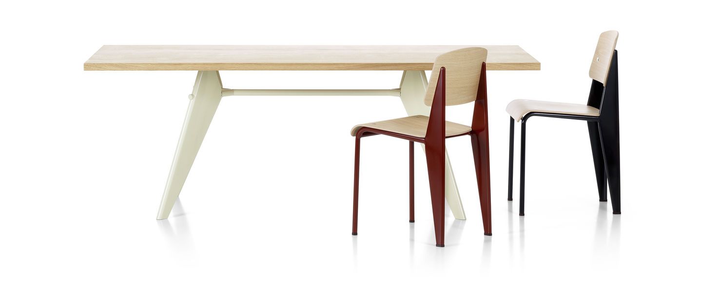 L'esthétique de la table EM de Jean Prouvé suit des principes structurels, illustrant le flux des forces et des tensions dans sa construction. Elle est disponible en plusieurs tailles, avec des plateaux en bois massif de qualité supérieure ou en stratifié HPL dans une sélection de couleurs. Les plateaux de 2000 ou 2400 mm de long sont également disponibles en placage de chêne. Grâce à ce large choix, vous trouverez la table EM idéale pour chaque salle à manger.