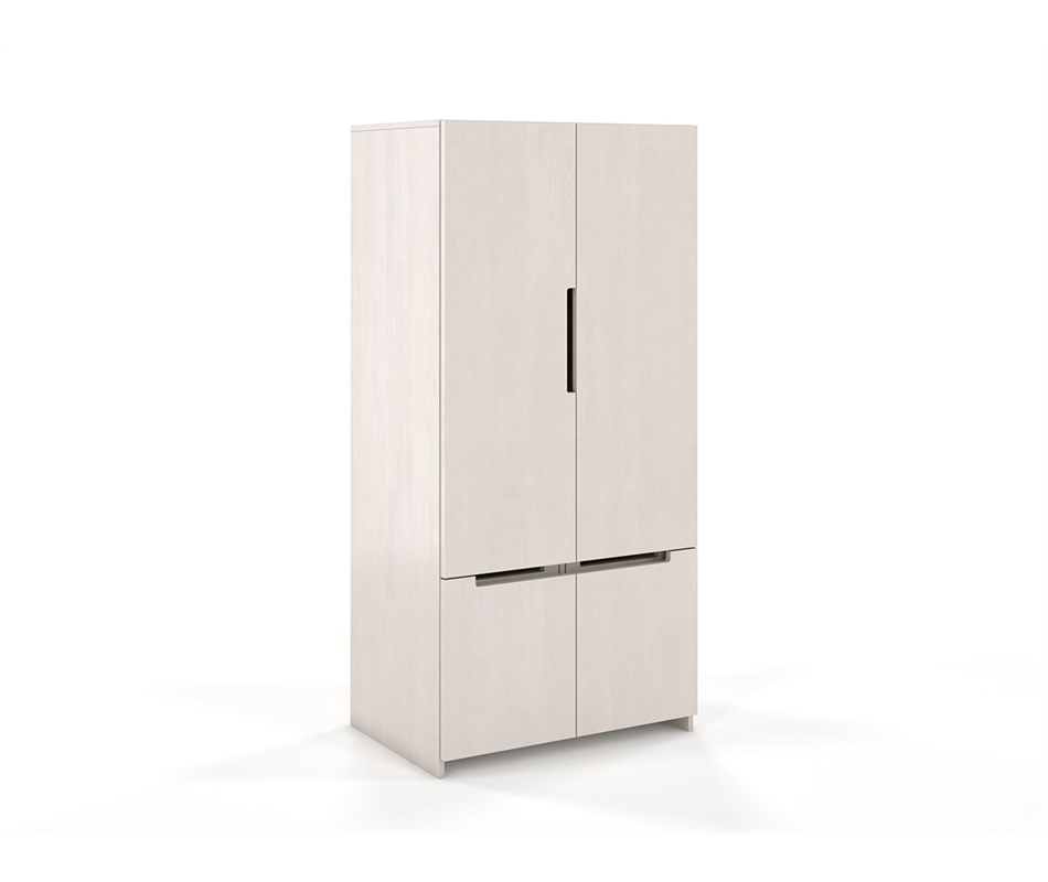 Armoire en stratifié pin massif. Hauteur 180 cm, largeur 86 cm, profondeur 60 cm. La technique lamellaire permet d'éliminer les nœuds et les impuretés, créant ainsi un produit à l'aspect le plus homogène et uniforme possible. Le bois lamellé abouté offre également une plus grande résistance aux dommages et a tendance à ne pas se déformer en raison des changements d’humidité de l’environnement.