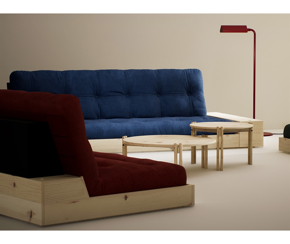 Table basse en pin scandinave massif de h 32 et diamètre 80 cm. Élégant accessoire d'ameublement en bois de pin scandinave, combine une esthétique élégante et minimaliste avec une silhouette unique, caractérisée par 3 pieds doubles. Elle peut être utilisée individuellement ou avec la table basse Sticks High, plus grande et plus petite. Peint avec une couche de laque à l'eau, il est disponible en différentes couleurs.