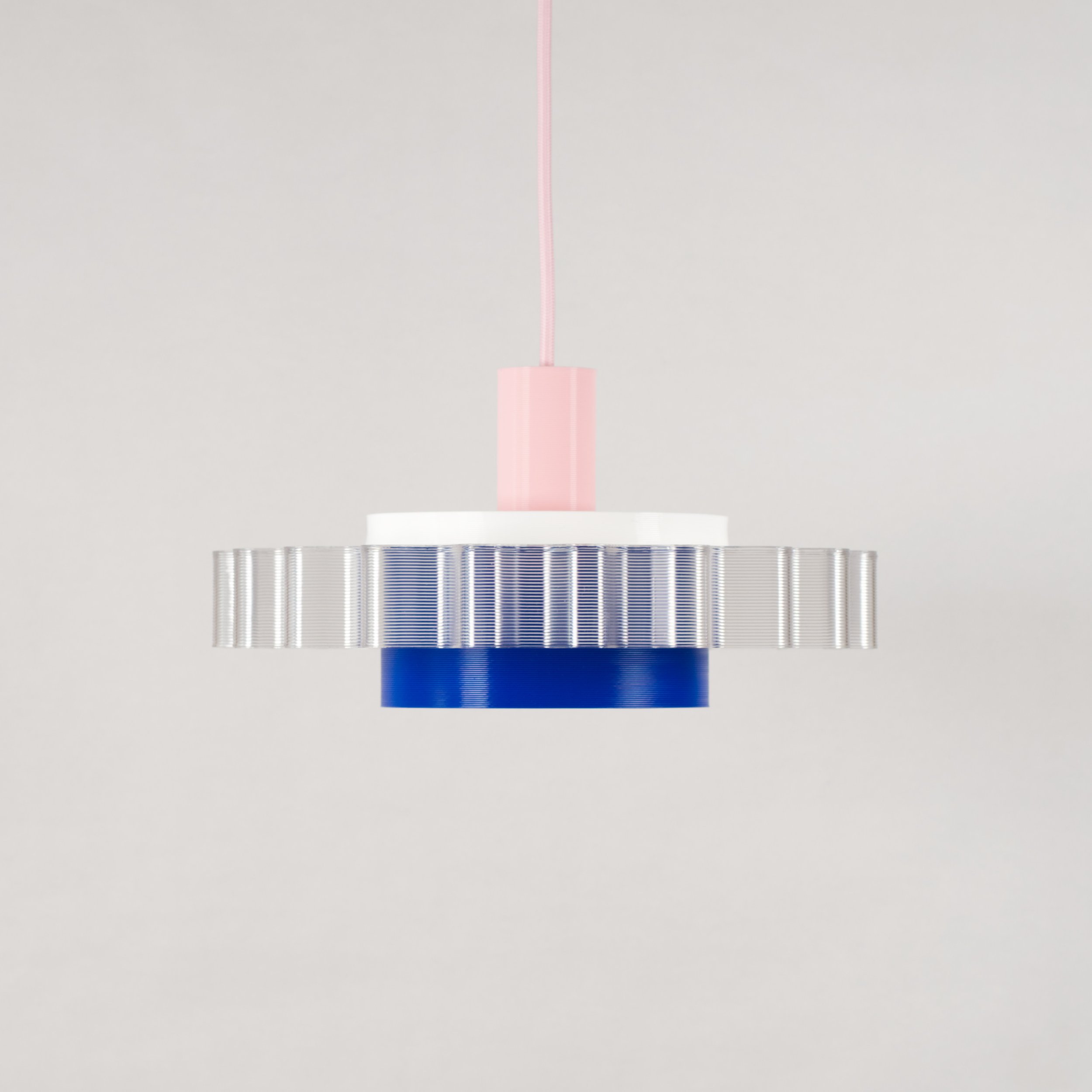 Gigi est une lampe à suspendre. Les 6 pièces qui la composent sont modulables. Il est possible de créer jusqu’à 8 combinaisons différentes avec la même lampe.