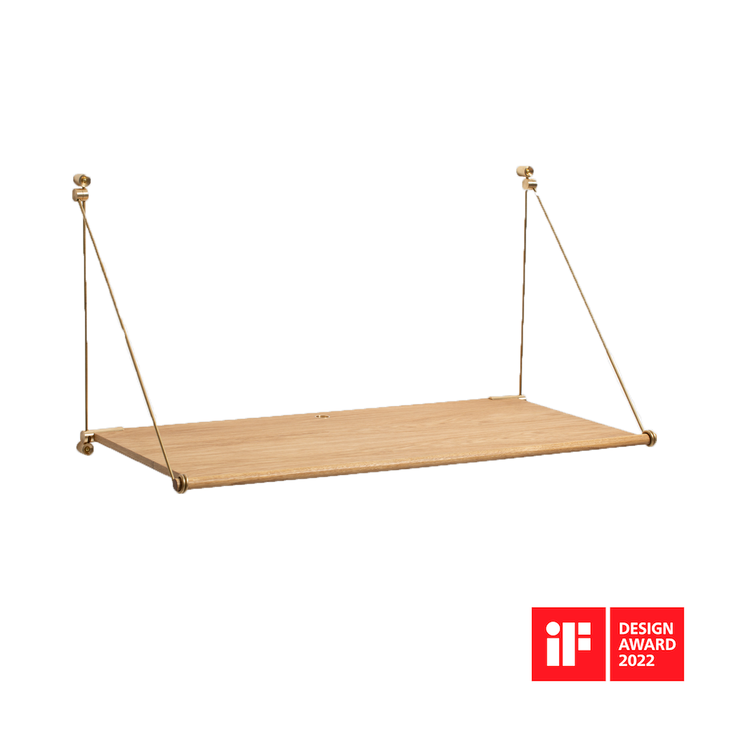 Le bureau Loop est un bureau pliable qui peut être plié à la fois vers le haut et vers le bas en fonction de vos besoins et de la quantité d'espace dans la pièce. Le bureau est en chêne et en laiton, ce qui, combiné à ses détails époustouflants, lui donne une touche nordique et en fait donc un ajout élégant à n'importe quelle pièce.