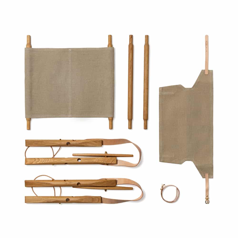 Matériel : chêne certifié FSC®, naturel, toile et cuir.