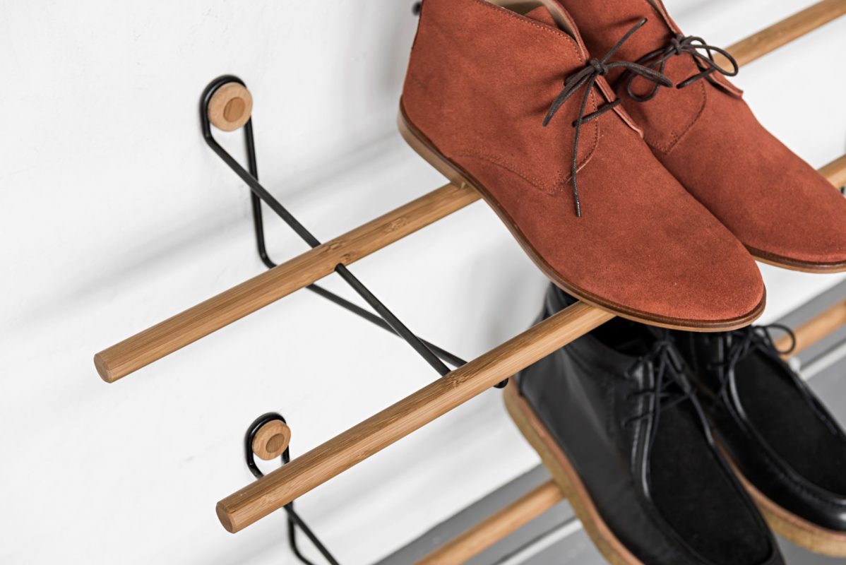Étant petit et simple mais très élégant, le porte-chaussures s'intègre dans n'importe quelle maison. Le porte-chaussures est fabriqué à partir de matériaux durables et conçu pour s'adapter à différents types et tailles de chaussures, ce qui le rend très convivial et facile à ajuster. Les supports sont disponibles en laiton et en acier noir - des matériaux qui sont facilement recyclés lorsque l'article atteint sa fin de vie.