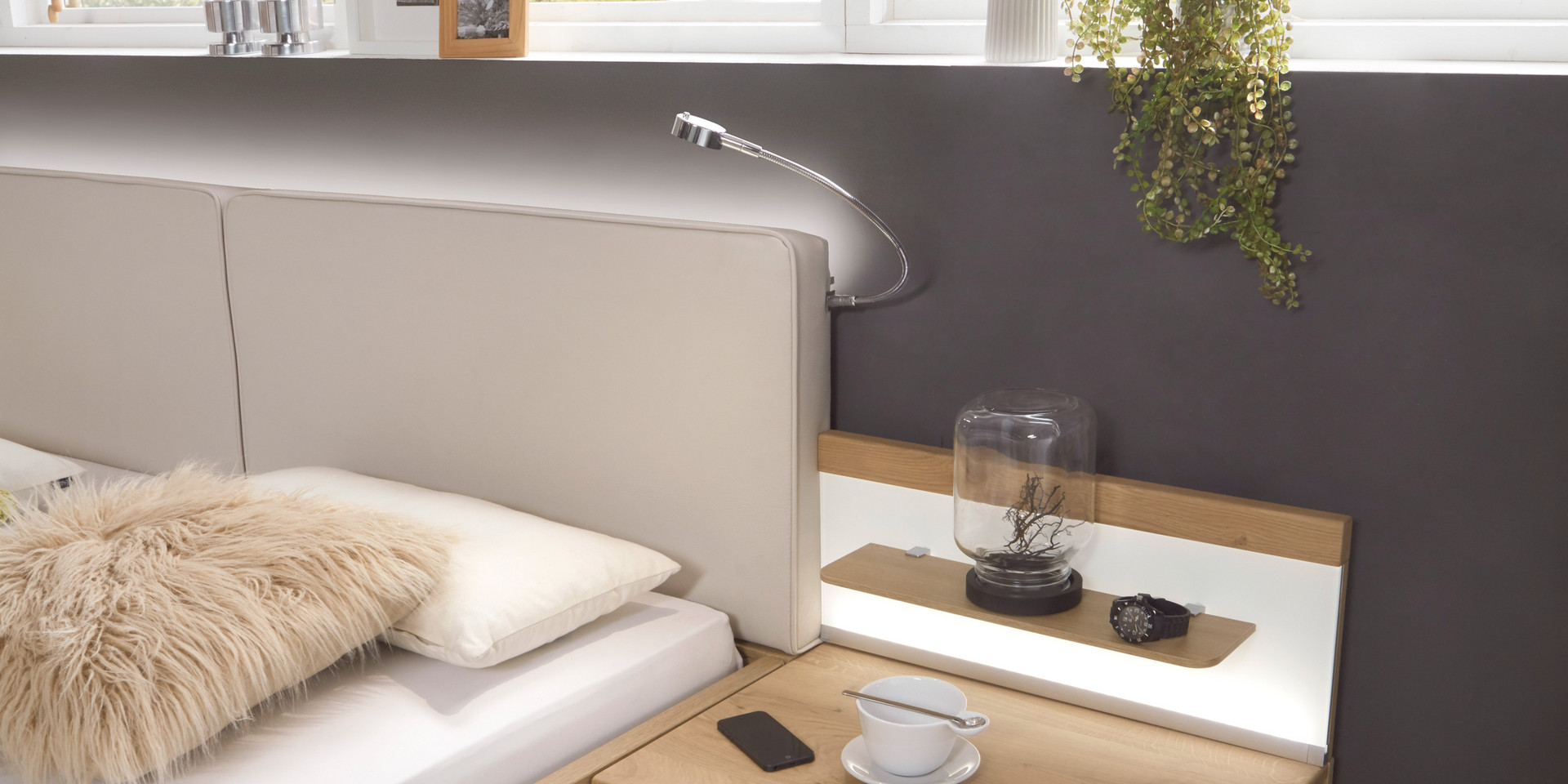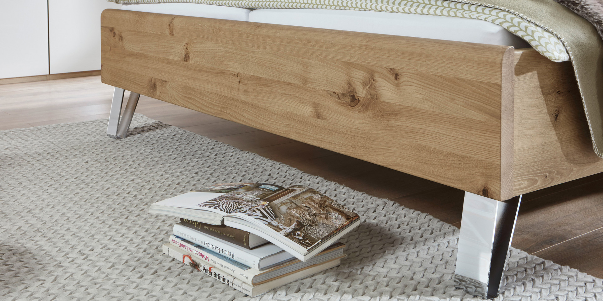 Un tiroir de lit sous le comptoir ou un tiroir de lit de grande capacité crée un espace de rangement supplémentaire et, avec les sommiers à lattes avec la ferrure Springauf, combine à la fois confort et ordre.
