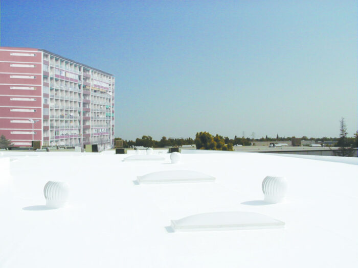 Dispositif d’étanchéité liquide élastomère réfléchissant à base d’eau blanc, d’une grande durabilité et résistance, capable de réduire la température de surface jusqu’à 50%. Il garantit la résistance à la stagnation de l’eau et peut également être utilisé sur de grandes surfaces. Il est idéal pour la protection des toitures fortement irradiées, en béton ou en fibrociment, des panneaux isolants et des membranes bitumineuses, oxydés pendant au moins 180 jours, même en cas d’entretien. Pour les supports soumis à de fortes contraintes ou pour égaliser la couche, renforcer avec le tissu WINTECHNO MAT. Pour la protection de la surface réfléchissante, il est recommandé d’appliquer, WINCLEAN, protecteur transparent avec une faible adhérence à la saleté.