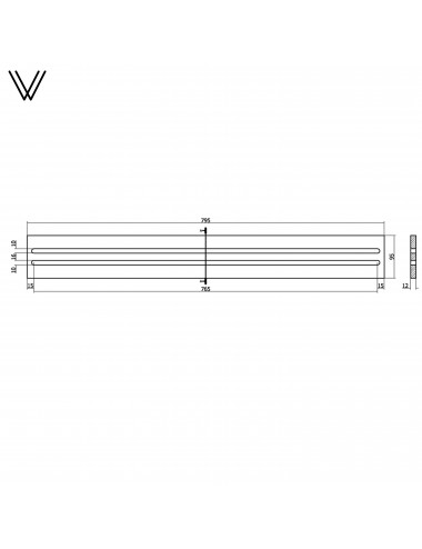 Le produit Rettangolare R95795D - 95 x 795 mm du fabicant Wondair a une longueur de 795 mm,