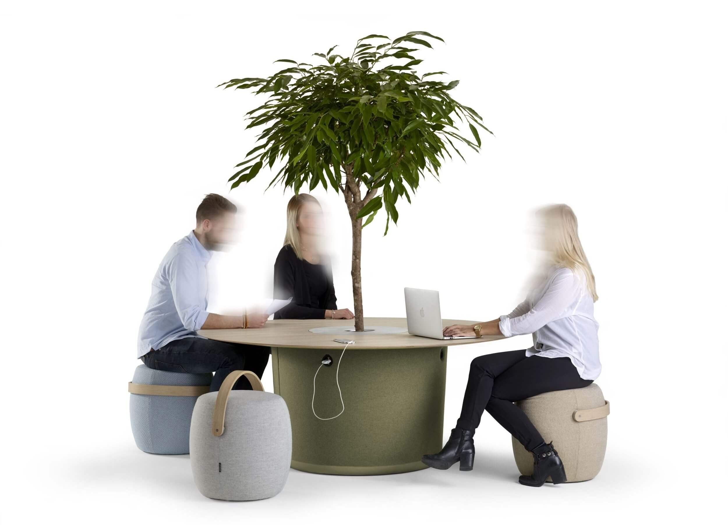 Avec sa silhouette au design fort, parfaitement identifiable, c’est le point de rencontre universel de l’espace de coworking, qui ambitionne d’inciter les individus à l’échange et à la collaboration grâce à un environnement de travail stimulant et original. Afin de rendre le bar de travail en coworking plus attractif encore, on le propose généralement avec un arbre en son centre, dans le plus pur esprit de la « végétalisation des espaces de travail ».