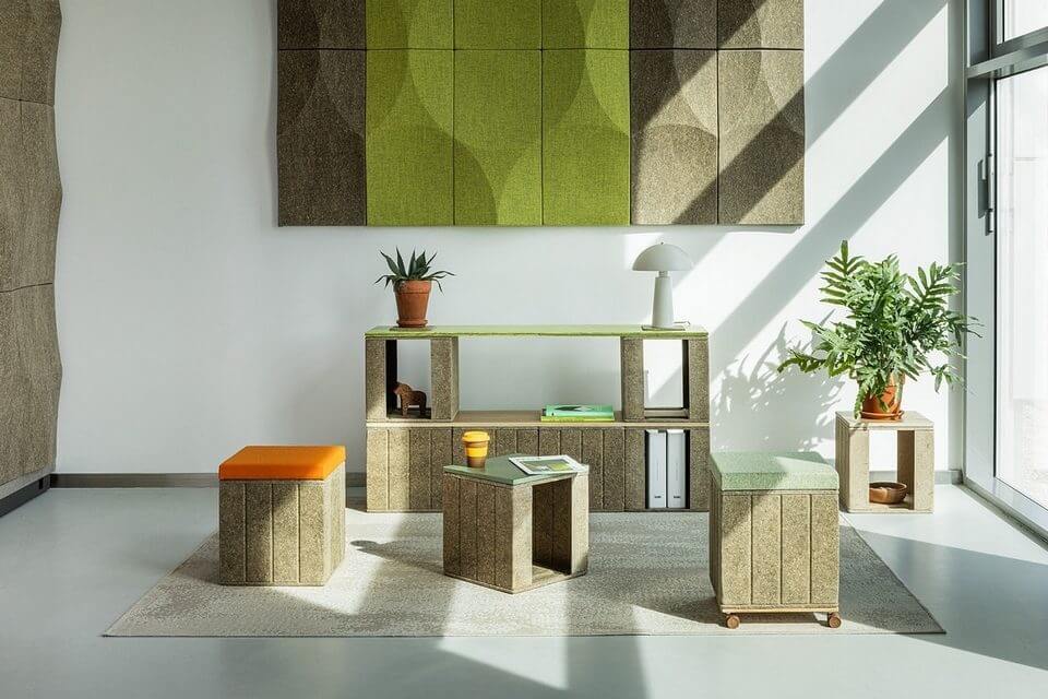 Le produit Cubes modulables coworking RE-USED de WOOD MOBILIER est composé de : Terre / Argile .