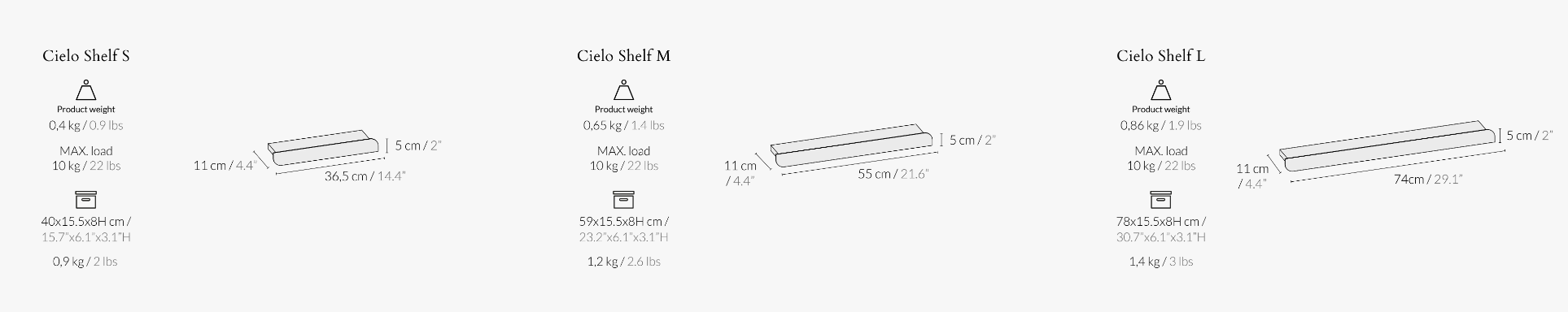Minimalistes et uniques, nos étagères murales Cielo apportent de la personnalité et une touche différente à vos murs avec leurs formes arrondies et leur fonctionnalité.
