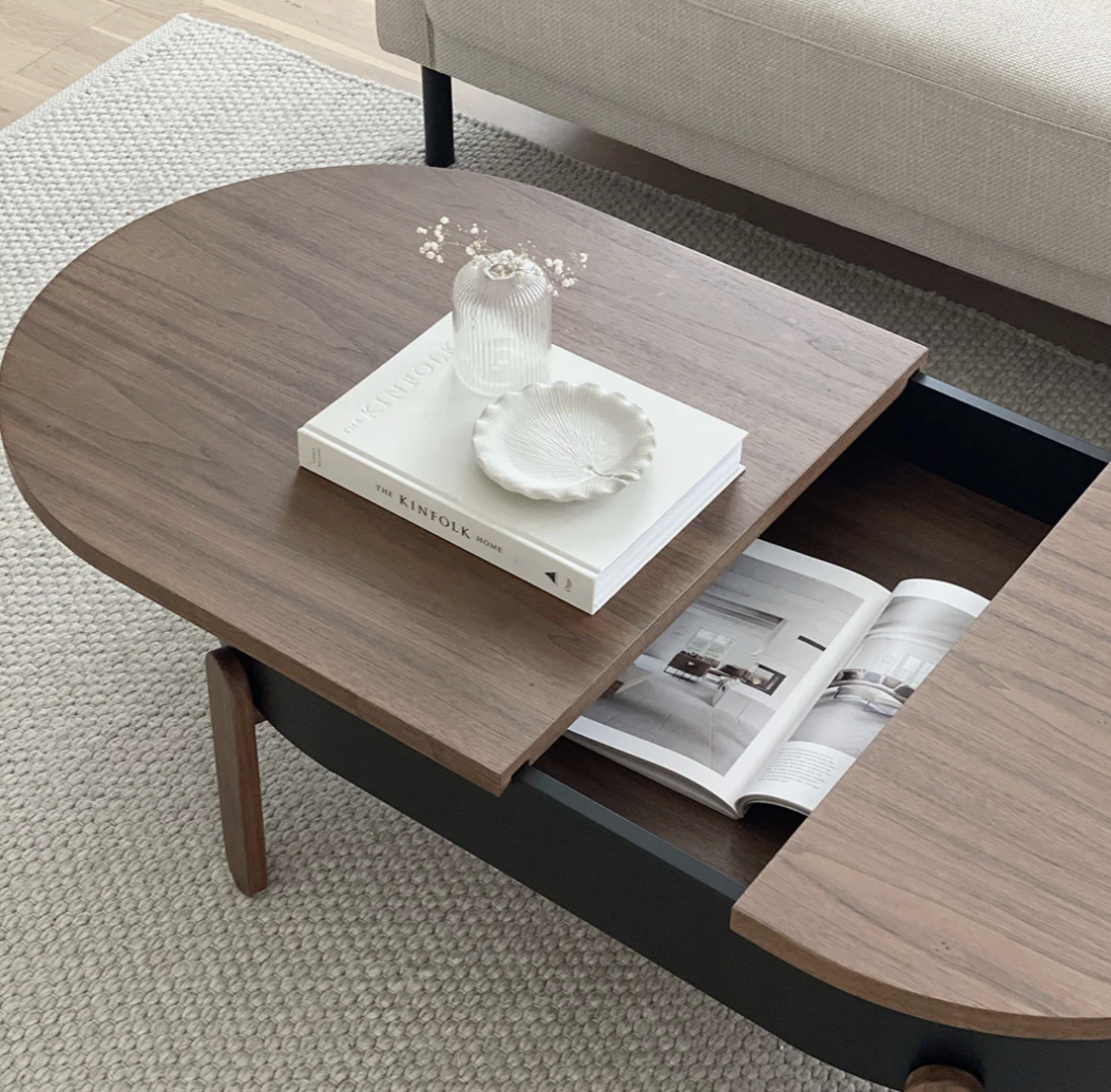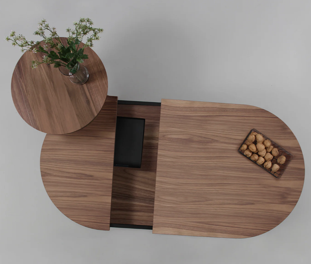 Combinez minimalisme et fonctionnalité avec notre table centrale moderne avec un grand rangement en noyer et noir. Retrouvez ici les meilleurs meubles modernes en bois !
