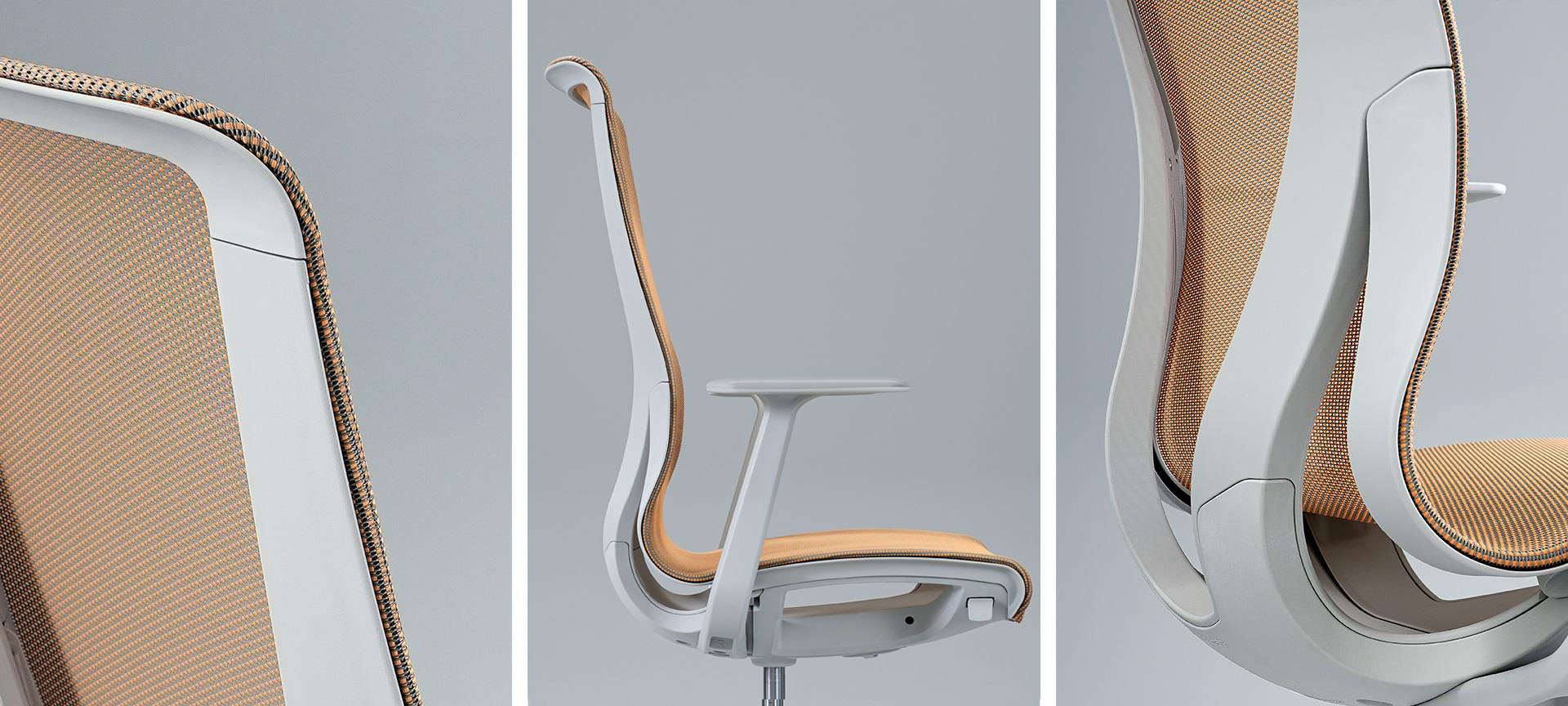 D-CHAIR attire le regard par son esthétique minimaliste et ses formes ergonomiques. L’assise se fond gracieusement dans le dossier et sa forme épouse les courbes du corps assis. Le dossier et l’assise du siège sont constitués d’une résille continue transparente. Cela donne au siège une sensation de légèreté et souligne la beauté de sa structure. Le mécanisme de ce siège moderne est intégré dans la structure globale du siège, de sorte qu’il ne semble pas exister. Vous ne remarquerez pas non plus de leviers saillants pour le réglage de la hauteur ou d’autres fonctions. L’équipe professionnelle chargée du développement du produit a méticuleusement conçu toutes les courbes, les formes arrondies, les joints du siège et l’épaisseur de ses composants. Le monobloc d’assise sans couture est constitué de plusieurs pièces différentes mais interactives qui s’assemblent pour former une unité indivisible, créant ainsi un design innovant. C’est la principale caractéristique du D-CHAIR qui le rend si unique et garantit un confort d’assise maximal.