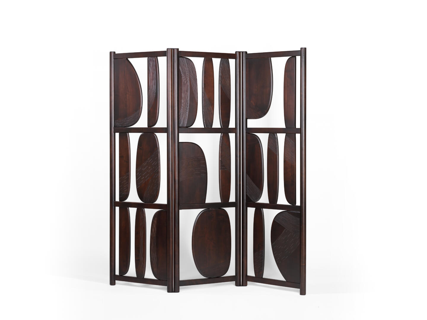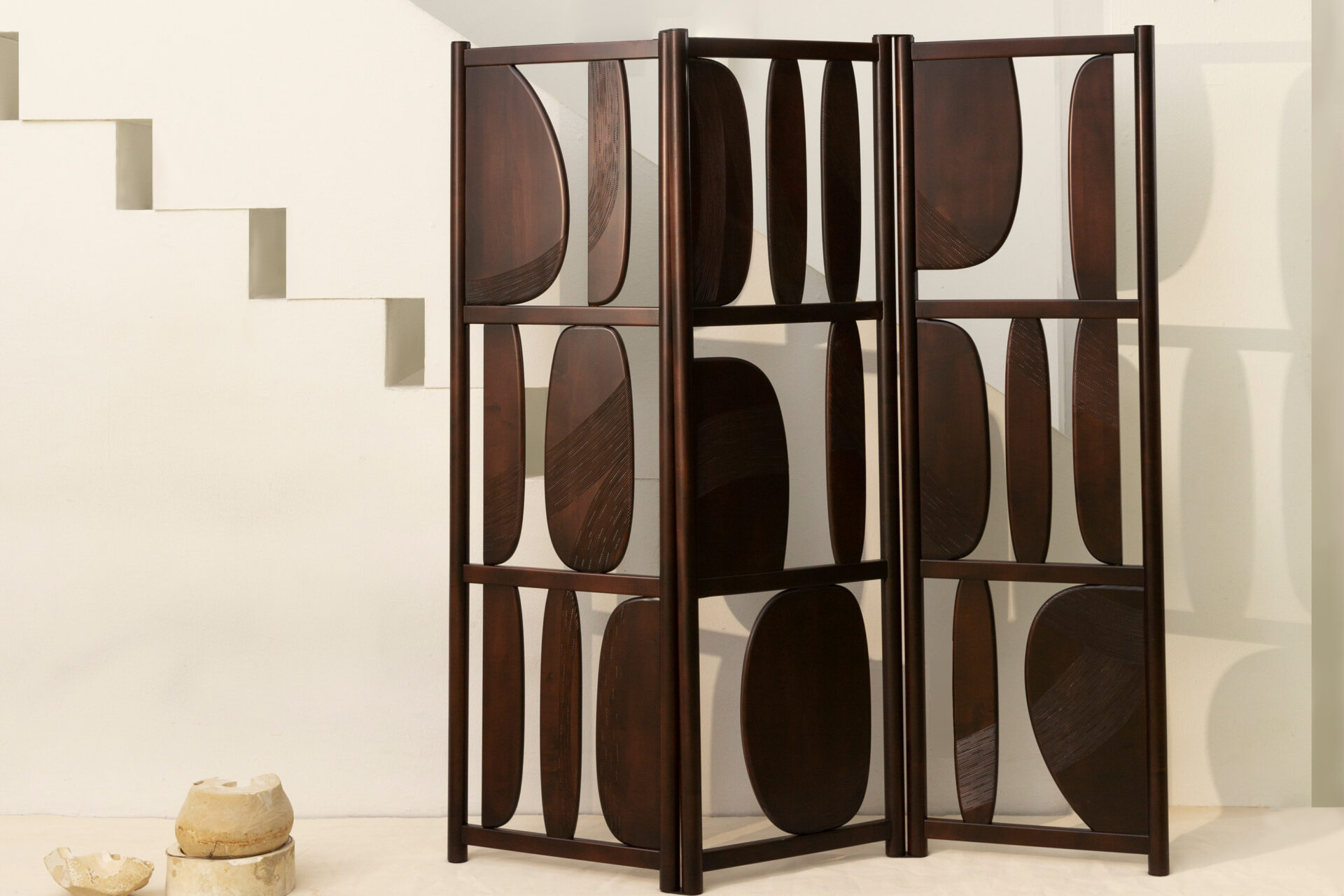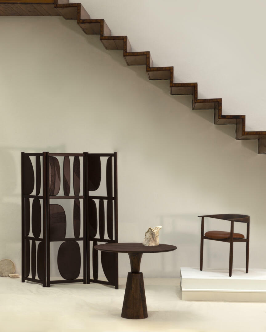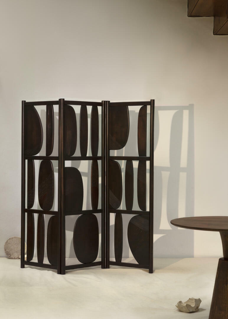 Conçu par Sebastian Herkner, le paravent Veo est un objet architectural composé de pièces rondes en bois massif de forme organique. Il s’agit essentiellement d’une œuvre d’art décorative, d’une sculpture qui, en raison de sa forme verticale « bidimensionnelle », peut également être considérée comme une peinture. Le paravent Veo tire son nom du mot bosniaque qui signifie voile, un objet qui cache et révèle à la fois, créant un sentiment de mystère curieux dans un espace. Veo est composé de segments de 55 cm de large et de 170 cm ou 113 cm de haut et on peut en ajouter autant que nécessaire.