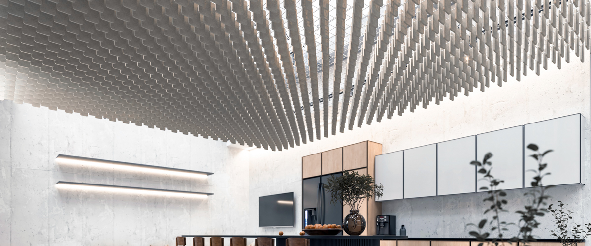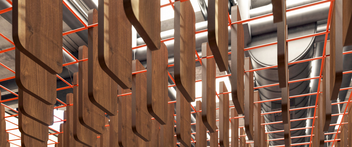 Le produit Zintra Mesh Baffles du fabricant ZINTRA classé dans la catégorie Faux plafonds fixes et démontables > Traitement acoustique particulier > Baffles acoustiques suspendues est référencé dans la Matériauthèque digitale Materiaux.archi.