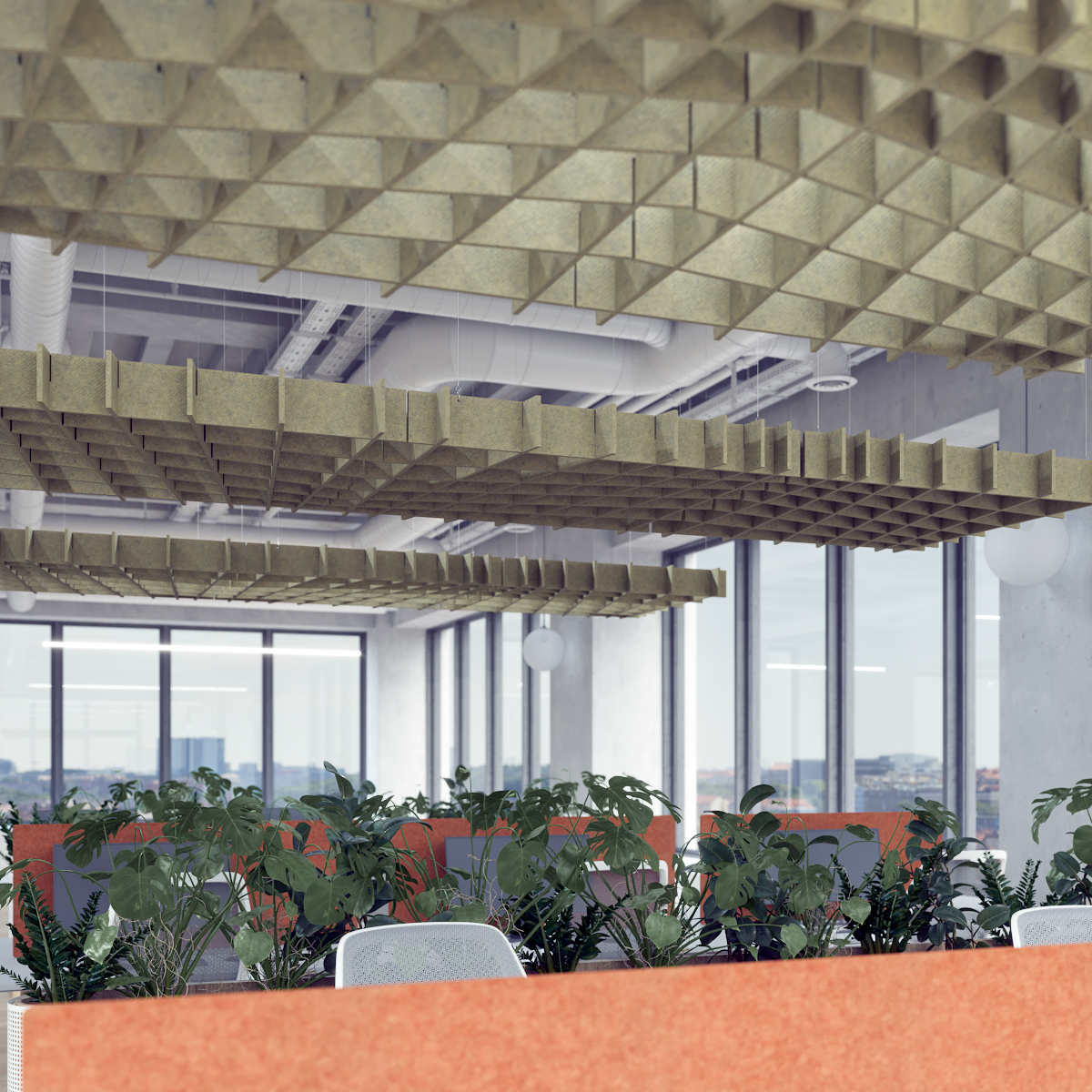 Zintra Acoustic Clouds are available in a unique range of shapes and forms constructed from pressure fit interlocking Zintra profiles. Easy to assemble and install, clouds will add drama to your space whilst simultaneously improving acoustics by utilising Zintra's powerful sound absorption properties.