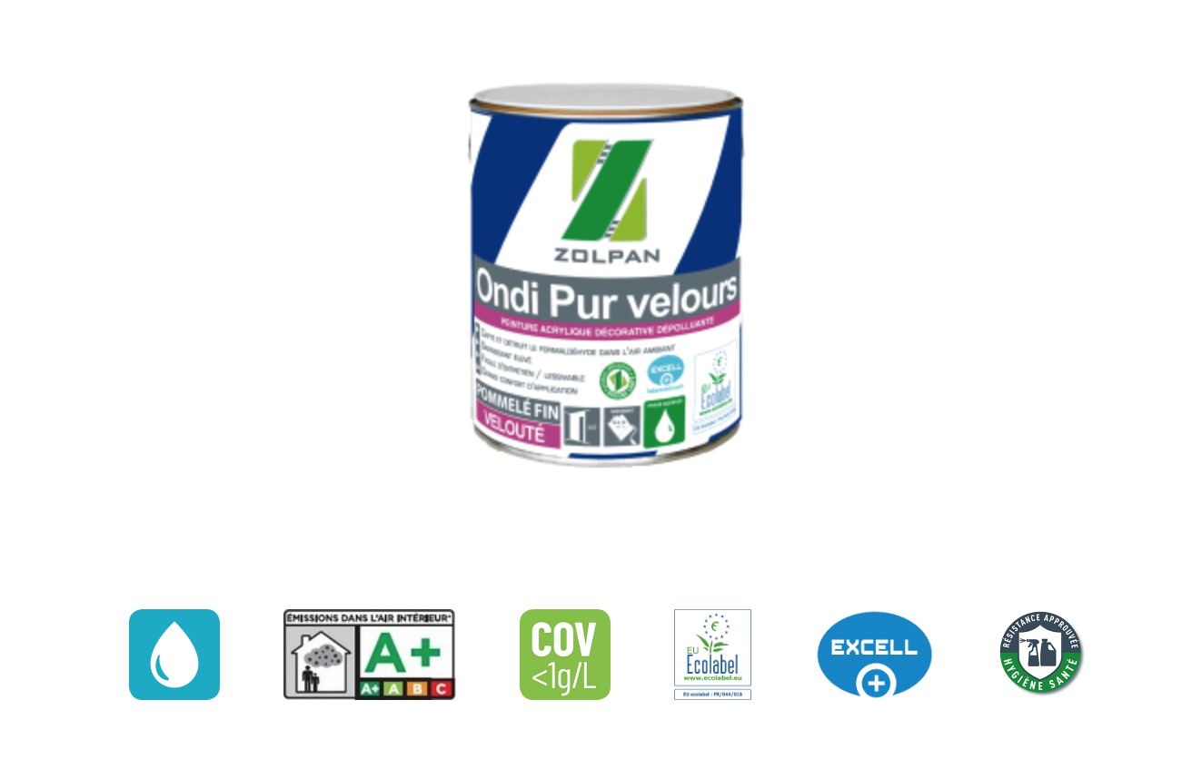 Le produit Ondi Pur Velours du fabicant zolpan a Il dispose du Label Ecolabel, Excell+, Hygiène santé