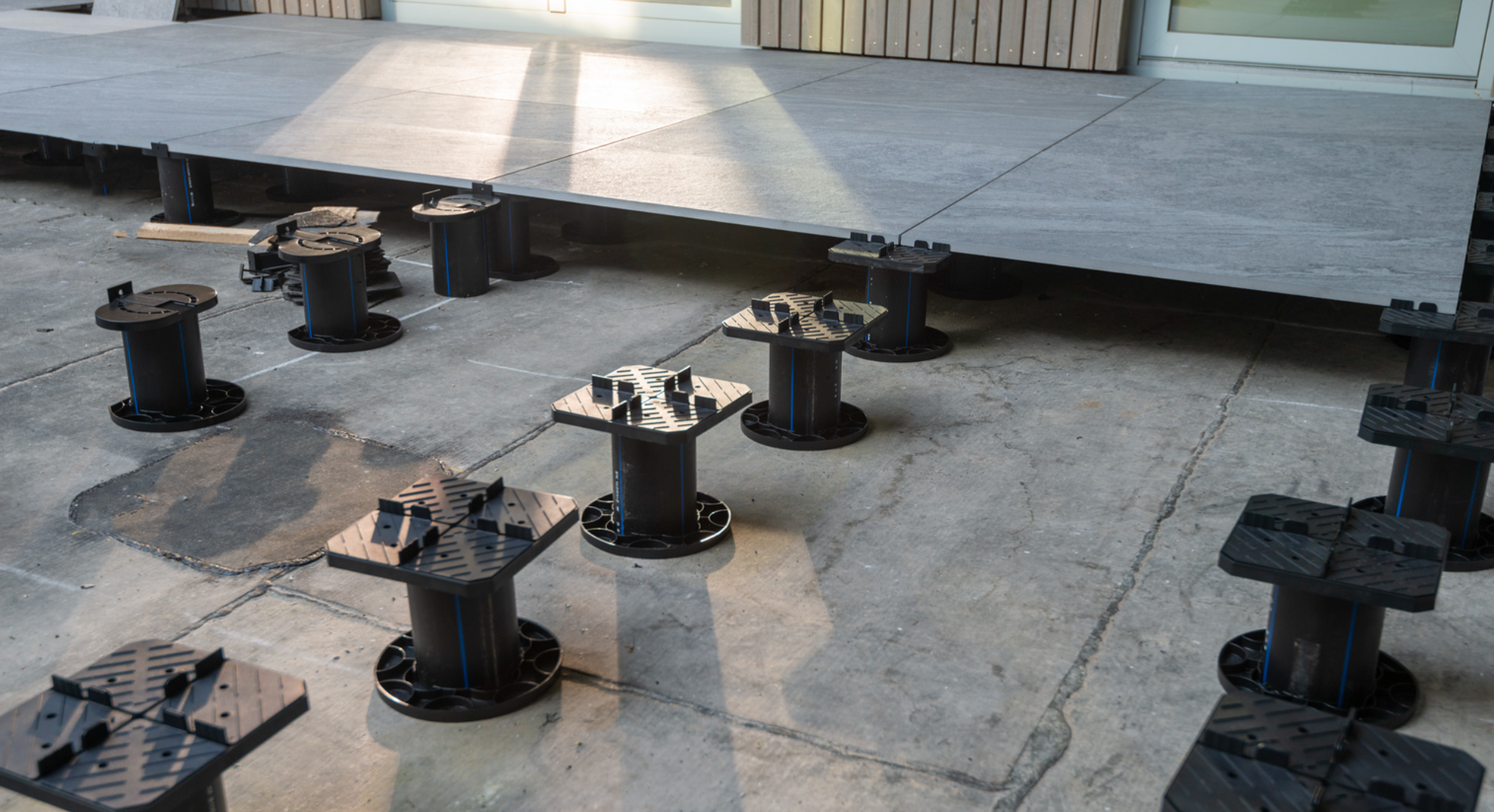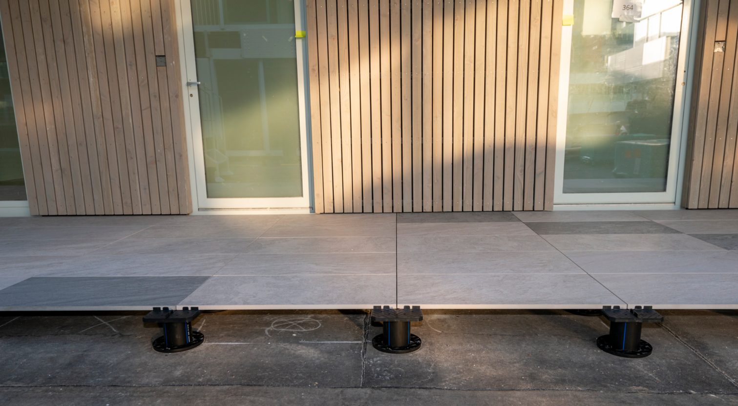 DNS® est particulièrement adapté au pavage des toits végétalisés, des terrasses sur le toit, des jardins sur le toit, des places de toit en sous-sol et des promenades sur le toit. DNS® peut être combiné avec n'importe quelle tuile Zoontjens. Pour chaque type de revêtement de toit, un élément de support distinct a été développé afin de garantir une surface de toit parfaitement étanche. Pour les carreaux de dimensions supérieures à 60x60 cm ou pour une augmentation de hauteur de plus de 40 cm, utilisez DNS®Large .