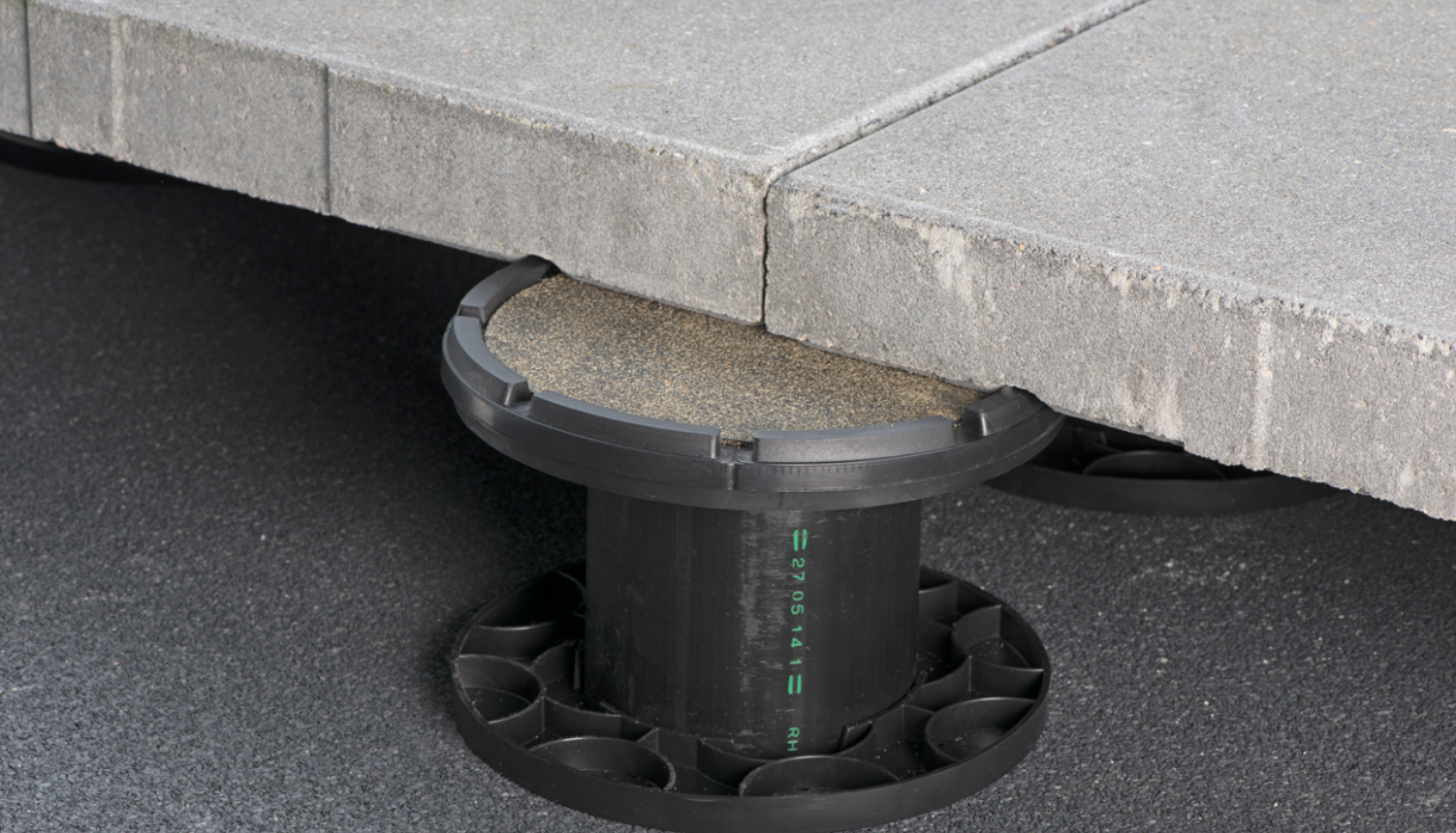 Surélévation et mise à niveau de toits-terrasses, toits végétalisés ou promenades sur toits. Grâce à notre système DNS® breveté, nous pouvons amener rapidement et facilement le pavage de toiture à la hauteur souhaitée.