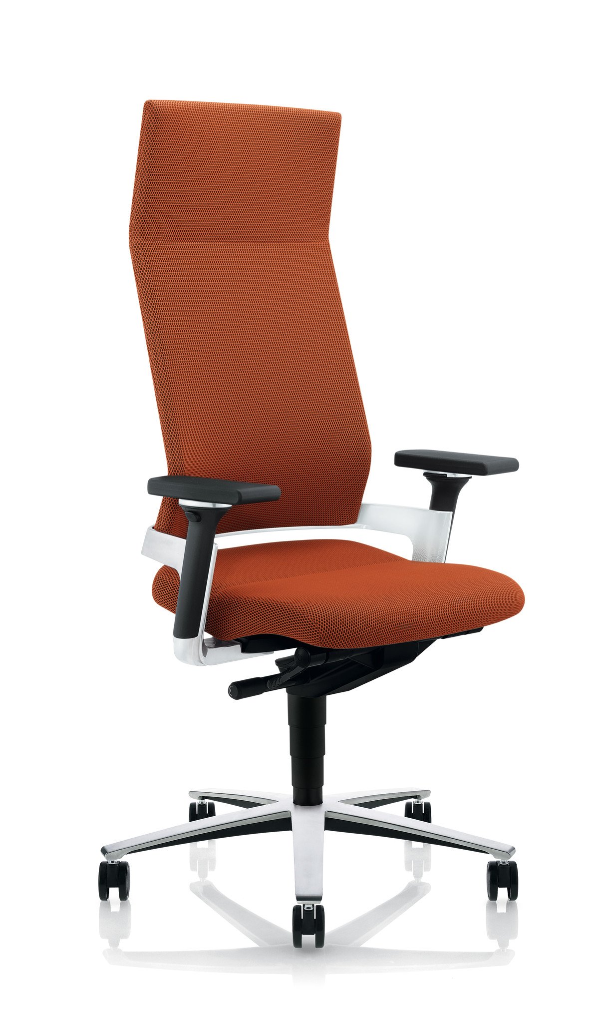 Le mécanisme Syncro-Dynamic advanced ® assure une position assise sans fatigue et respectueuse du corps grâce à une assise individuellement réglable. Une base latérale de couleur contrastante, des inserts en cuir placés sur les côtés et un arceau de dossier en aluminium poli donnent le ton esthétique de ce fauteuil de direction tout à fait impressionnant.