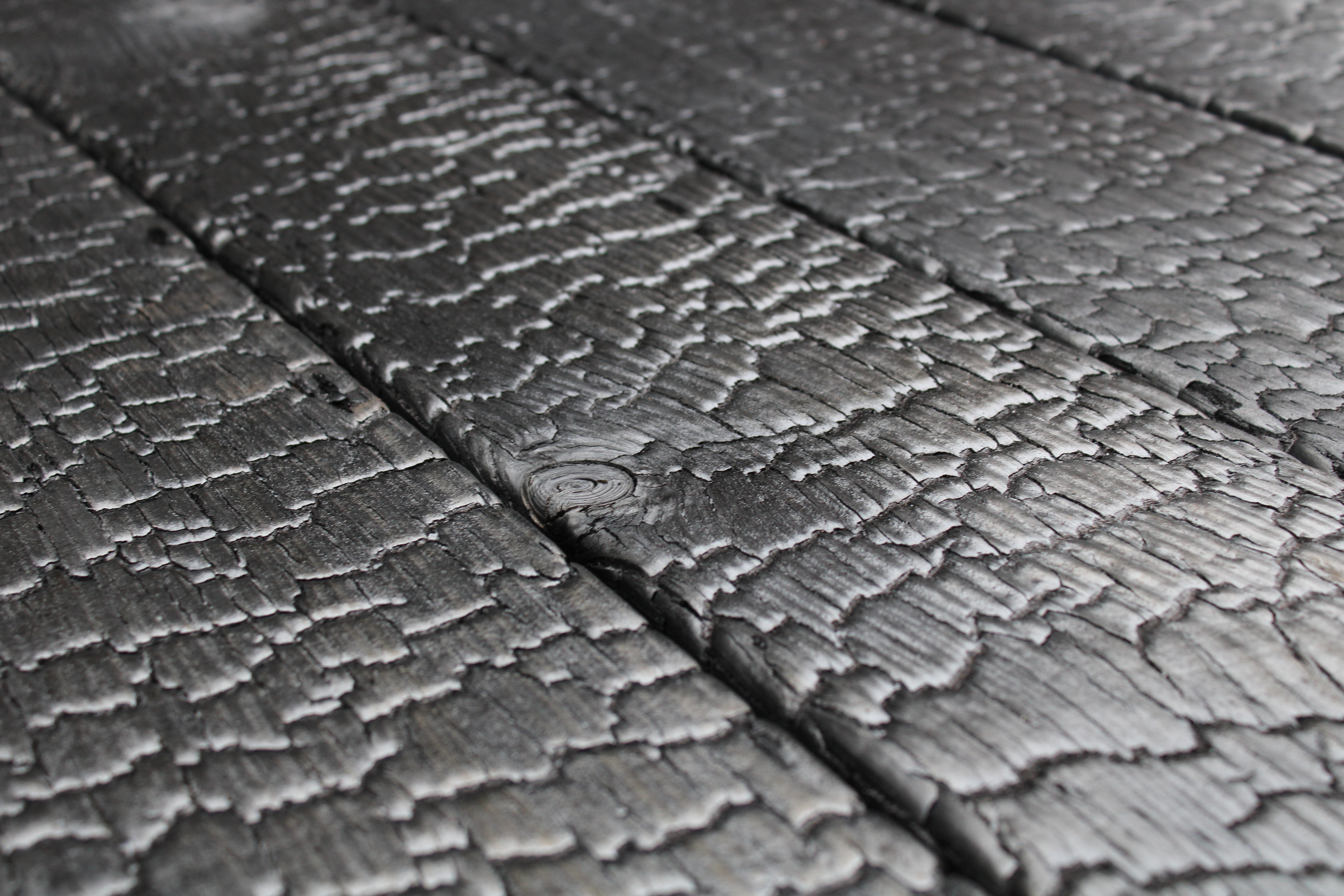 Naoshima est fabriqué à partir de sapin Douglas provenant de forêts certifiées FSC® européennes. Le Naoshima a une classe de durabilité 3 (classe d’emploi 2) et convient donc parfaitement comme revêtement mural durable. Un trait caractéristique est la présence de nœuds, qui peuvent être visibles dans la couche de carbone. Pendant le processus de carbonisation dans notre four, les nœuds peuvent se détacher de la planche avec des diamètres pouvant aller jusqu’à 2 cm. Cela donne un effet irrégulier supplémentaire.